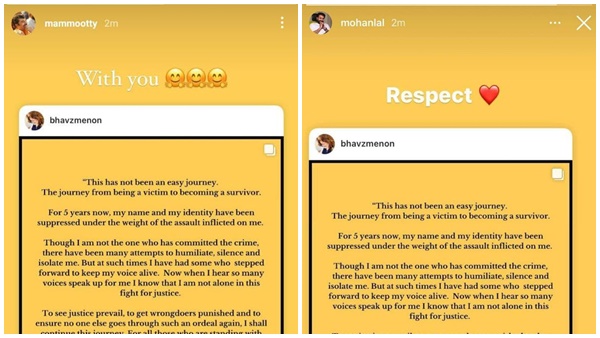 കൂടെയുണ്ടെന്ന് മമ്മൂട്ടി, ബഹുമാനമെന്ന് മോഹൻലാൽ, അതിജീവിച്ച നടിയ്ക്ക് പിന്തുണയുമായി താരങ്ങൾ...