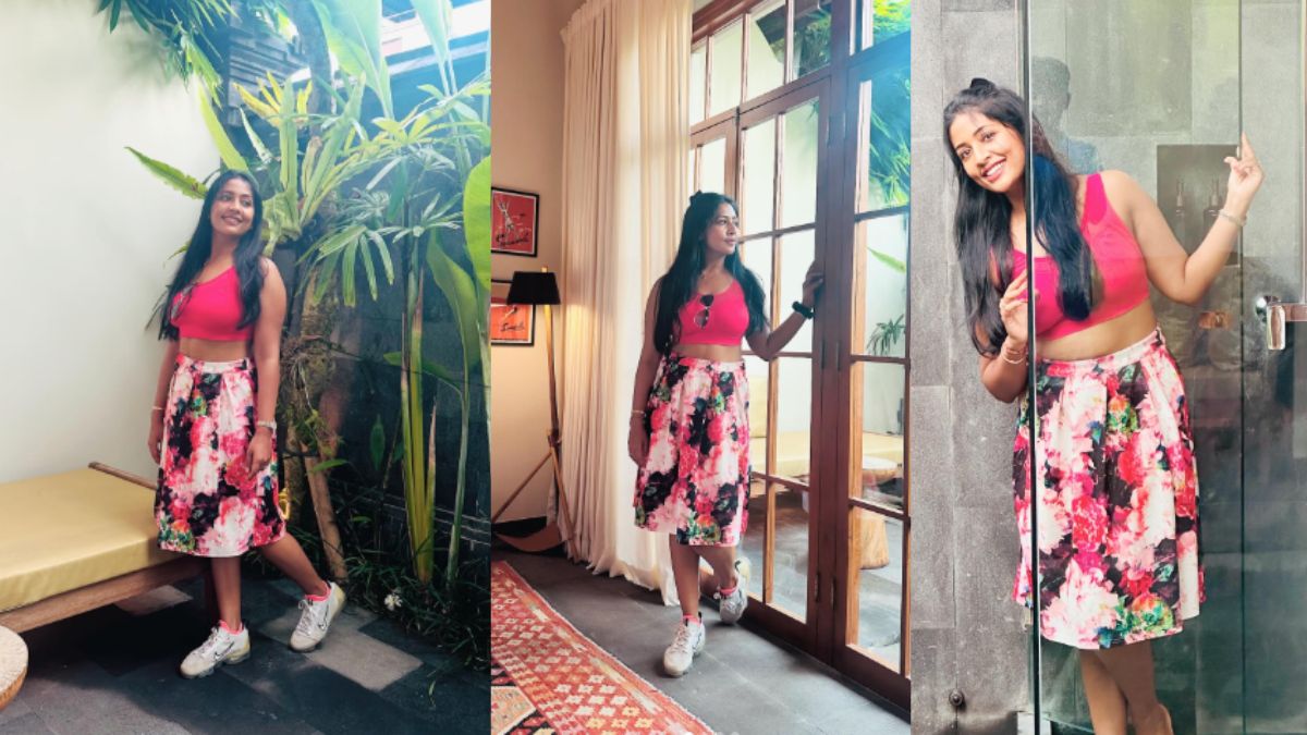 ഇപ്പോഴിതാ നടി ഇന്സ്റ്റഗ്രാമില് പങ്കുവെച്ച പുതിയ ചിത്രങ്ങളാണ് വൈറല് ആയിരിക്കുന്നത്. ഗ്ലാമറസ് ആയിട്ടുള്ള വസ്ത്രത്തില് ഉള്ള ഫോട്ടോകളാണ് പങ്കുവെച്ചിരിക്കുന്നത്. പിങ്ക് നിറത്തിലുള്ള സ്ലീവ്ലെസ്സ് ക്രോപ് ടോപ്പും പിങ്ക് പൂക്കളുള്ള സ്കര്ട്ടുമാണ് നവ്യ ധരിച്ചിരിക്കുന്നത്.