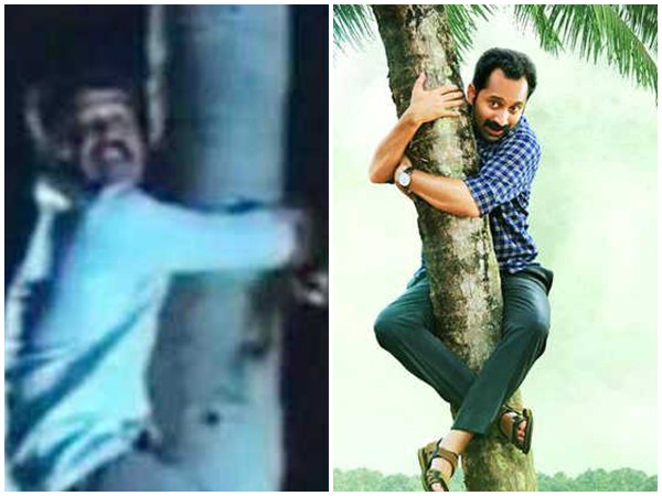 തെങ്ങിൽ കയറി ഇരുക്കുന്ന ഫഹദിനെ കാണുമ്പോൾ ആദ്യം എല്ലാവരും ഓർക്കുക സത്യൻ-ശ്രീനി-ലാൽ കൂട്ട്കെട്ടിൽ പിറന്ന വരവേൽപ്പ് എന്ന ചിത്രത്തിലെ ഒരു രംഗമാണ്. ചിത്രത്തിൽ ലാലേട്ടൻ അവതരിപ്പിച്ച മുരളി എന്ന കഥാപാത്രം പട്ടിയെ പേടിച്ച് തെങ്ങിൽ കയറി ഇരിക്കുന്ന ആ സീനാണ് എല്ലാവരുടെ മനസ്സിൽ ഓടി എത്തുന്നത്. മുരളീ നീ ഇവിടെ വരെ വന്നിട്ട് വീട്ടിൽ കയറാതെ പോവാണോ എന്ന സഹോദരന്റെ ഭാര്യയുടെ ഡയലോഗും ഈ അവസരത്തിൽ ആളുകൾ ഓർമിപ്പിക്കുന്നു.