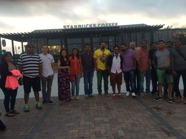 അണിയറക്കാര് അമേരിക്കയിലെ ചിത്രീകരണരംഗങ്ങളും ആഘോഷരംഗങ്ങളുമെല്ലാം ഫേസ്ബുക്ക് പേജിലൂടെ ആരാധകര്ക്കായി പങ്കുവെയ്ക്കുന്നുണ്ട്. അണിയറക്കാരെല്ലാം കൂടി സ്റ്റാര് ബക്സ് കോഫി ഷോപ്പിന് മുന്നില് നില്ക്കുന്ന ചിത്രങ്ങളും മോഹന്ലാലിന്റെ ഗോള്ഫ് കളി ചിത്രങ്ങളും എല്ലാം പേരുച്ചാഴിയുടെ ഫേസ്ബുക്ക് പേജില് കാണാം.