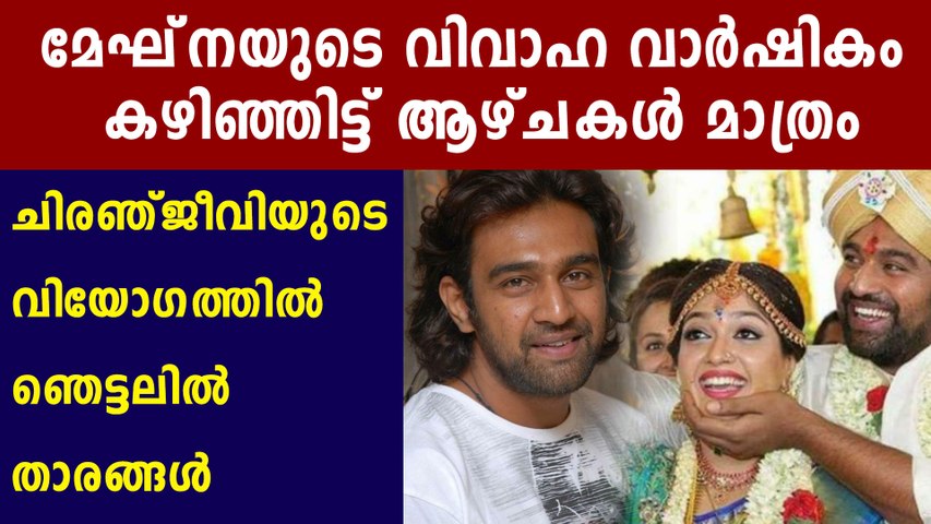മേഘ്നയുടെ വിവാഹ വാര്ഷികം കഴിഞ്ഞിട്ട് ആഴ്ചകൾ! ഭര്ത്താവിന്റെ വിയോഗത്തില് ആശ്വാസവുമായി താരങ്ങള്
