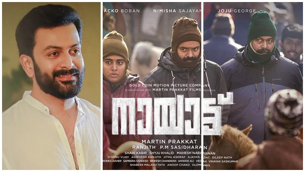 ഇപ്പോള് ആ ചിത്രവുമായി സംവിധായകന് മാര്ട്ടിനും ഛായാഗ്രാഹകന് ഷൈജുവും വരികയാണ്. ഒപ്പം ചാക്കോച്ചന്, ജോജു, നിമിഷ, വിനയ് തുടങ്ങിയ മികവുറ്റ അഭിനേതാക്കളും. മലയാളത്തില് എറ്റവും പ്രതീക്ഷയോടെ കാത്തിരിക്കുന്ന ചിത്രമാണ് നായാട്ട്. പോസ്റ്ററിനൊപ്പം പൃഥ്വിരാജ് സോഷ്യല് മീഡിയയില് കുറിച്ചു. അതേസമയം ചാക്കോച്ചന്, നിമിഷ, ജോജു എന്നിവര് തന്നെയാണ് നായാട്ടിന്റെ ഫസ്റ്റ്ലുക്ക് പോസ്റ്ററിലുമുളളത്. മങ്കി ക്യാപും സെറ്ററും ധരിച്ച് ആള്ക്കുട്ടത്തിനിടയിലൂടെ നടക്കുകയാണ് ഇവര്.