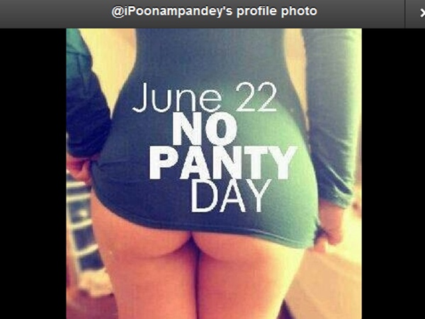 ട്വിറ്ററിലെ പ്രൊഫൈല് ചിത്രം തന്നെ ആഘോഷത്തിന്റെ ഭാഗമാക്കിയായിരുന്നു ജൂണ് 22 ന് പൂനം പാണ്ഡേയുടെ രംഗപ്രവേശം. ഹാപ്പി നോ പാന്റി ഡേ, ഗുഡ് മോര്ണിംഗ് ട്വീറ്റ്ഹാര്ട്ട്സ് എന്നായിരുന്നു പൂനത്തിന്റെ ആദ്യത്തെ ട്വീറ്റ് തന്നെ.