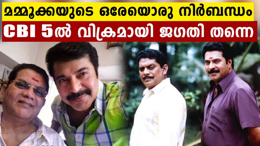 സിബിഐ പരമ്പരയില് ജഗതി അവതരിപ്പിച്ച വിക്രം എന്ന കഥാപാത്രം ഏറെ ഹിറ്റായി മാറിയ ഒന്നായിരുന്നു. വേഷം മാറി കേസ് അന്വേഷിക്കുന്ന വിക്രം സേതുരാമയ്യരുടെ ഇഷ്ട അസിസ്റ്റന്റുമാരില് ഒരാളാണ്. പരമ്പരയുടെ തുടക്കം മുതല് തന്നെ ജഗതി കൂടെ തന്നെയുണ്ട്. എന്നാല് 2012 ല് ഉണ്ടായ വാഹനാപകടം ജഗതി എന്ന പ്രതിഭയെ മലയാള സിനിമയില് നിന്നും അകറ്റി നിര്ത്തുകയായിരുന്നു. പക്ഷെ സിബിഐയുടെ അഞ്ചാം ഭാഗം എത്തുമ്പോള് അതില് ജഗതി ഉണ്ടാകണമെന്നത് മമ്മൂട്ടിയുടെ നിര്ബന്ധമായിരുന്നു. ഇതോടെയാണ് അഞ്ചാം ഭാഗത്തില് ജഗതി അഭിനയിക്കുമെന്ന തീരുമാനത്തിലേക്ക് എത്തുന്നത്.