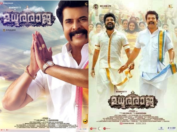 1982 ൽ നടന്ന വൈപ്പിൻ വ്യാജമദ്യദുരന്തത്തിന്റെ പശ്ചാത്തലത്തിൽ ആണ് 150 മിനിറ്റ് 58 സെക്കന്റ് ദൈർഘ്യമുള്ള മധുരരാജ ആരംഭിക്കുന്നത്. ദുരന്തത്തിന് കാരണക്കാരനായ നടേശനെ അറസ്റ്റ് ചെയ്യാൻ ചെല്ലുന്ന ബാലു എന്ന സബ് ഇൻപെക്ടറെ മൃഗീയമായി കൊല ചെയ്യപ്പെടുന്ന ആദ്യത്തെ പത്ത് മിനിറ്റ്നേരം പുലിമുരുകന്റെ തുടക്കത്തെ വെല്ലും വിധം ഹൃദയദ്രവീകരണശേഷി ഉള്ളതാണ്. അതിനുശേഷമാണ് ഉദയ്കൃഷ്ണന്റെയും വൈശാഖ് ന്റെയും പേരുകൾ സ്ക്രീനിൽ തെളിയുന്നത്. മുരുകനിലെ കടുവയെ പോലെ വില്ലന്റെ ക്രൂരത എട്ടുമിനിറ്റ് കൊണ്ട് തന്നെ പ്രേക്ഷകനിൽ സ്ഥാപിച്ചെടുക്കാൻ പടത്തിന് കഴിയുന്നു..