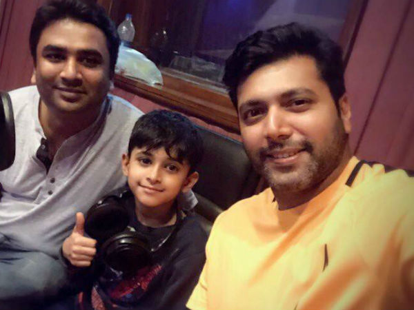 തെന്നിന്ത്യന് സിനിമയിലെ മുന്നിര താരങ്ങളിലൊരാളായ ജയം രവിക്ക് പിന്നാലെ മകന് ആരവും സിനിമയില് തുടക്കം കുറിക്കുകയാണ്. അച്ഛന് പിന്നാലെ തുടക്കം കുറിക്കുന്ന താരപുത്രന്റെ സിനിമ പുറത്തിറങ്ങുന്നതിനായി കാത്തിരിക്കുകയാണ് ആരാധകര്. അതിനിടയിലാണ് ചിത്രത്തെക്കുറിച്ചുള്ള വിശേഷങ്ങള് പങ്കുവെച്ച് ജയം രവി രംഗത്തെത്തിയത്. അഭിനയത്തിലൂടെ അണിയറപ്രവര്ത്തകരെ അമ്പരിപ്പിച്ച താരപുത്രന് ഇപ്പോള് ഡബ്ബിംഗിലൂടെ അച്ഛനെ അമ്പരപ്പെടുത്തിയിരിക്കുകയാണ്. ആരവിന്റെ ഡബ്ബിംഗ് വിശേഷങ്ങളെക്കുറിച്ച് ഫേസ്ബുക്കിലൂടെയാണ് ജയംരവി വിശേഷങ്ങള് പങ്കുവെച്ചത്.