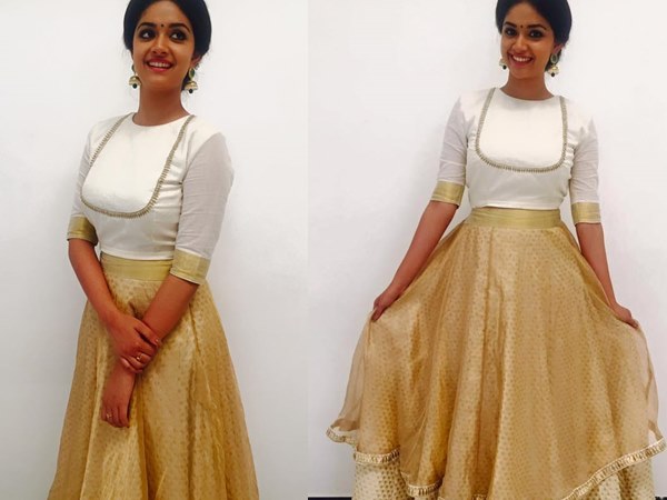 മനോഹരമായ വസ്ത്രമണിഞ്ഞാണ് നായിക കീര്ത്തി സുരേഷ് ചടങ്ങില് പങ്കെടുത്തത്. ഓഫ് വൈറ്റ് നിറത്തിലുള്ള ടോപ്പും സ്കേട്ടുമണിഞ്ഞ്. ഡ്രസിലും ഹെയര് സ്റ്റൈലിലുമെല്ലാം കീര്ത്തി സുരേഷിന്റെ ലുക്കില് തന്നെ മാറ്റം വരുത്തി. കീര്ത്തി സുരേഷ് തന്റെ ഫേസ്ബുക്ക് പേജിലൂടെ ഓഡിയോ ലോഞ്ചിലെ ഫോട്ടോസ് പോസ്റ്റ് ചെയ്തിട്ടുണ്ട്. നീല നിറത്തിലുള്ള ഷര്ട്ടായിരുന്നു ധനുഷിന്റേത്.