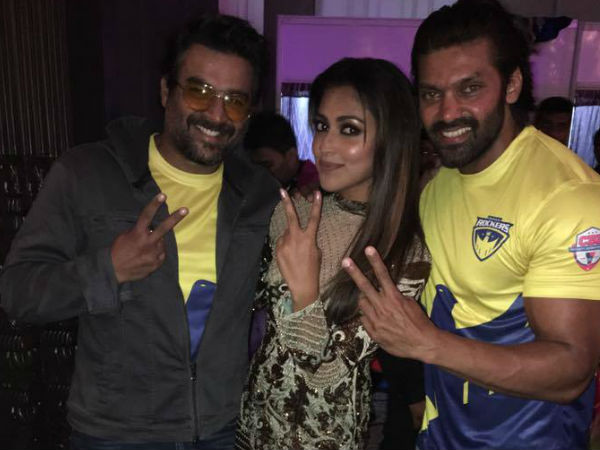 അമല പോളിന്റെയും ആര്യയുടെയും ആര് മാധവന്റെയും കാര്യമാണ് പറയുന്നത്. ചെന്നൈ റോക്കേഴ്സിന്റെ ലോഞ്ചിങ് ചടങ്ങില് അമലയെയും ആര്യയെയും കണ്ടപ്പോള് മാധവനാണ് ഒരുമിച്ചുള്ള ഫോട്ടോ എടുത്ത് ഫേസ്ബുക്കില് പോസ്റ്റ് ചെയ്തത്.