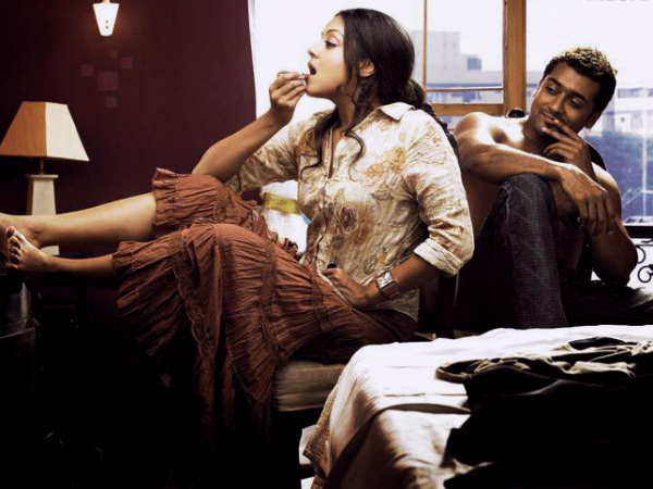 ഏഴു സിനിമകളിലാണ് ജ്യോ യും സൂര്യയും ഒരുമിച്ചത്. ഇരുവരും ഒരുമിച്ച ആദ്യ ചിത്രമായ പൂവെല്ലാം കേട്ടുപ്പാര് അവസാനമായി ഒരുമിച്ചെത്തിയ സില്ലിന് ഒരു കാതലുമാണ് ഏറെ ശ്രദ്ധിക്കപ്പെട്ടത്. തിരശ്ശീലയില് മാത്രമല്ല ജീവിതത്തിലും മികച്ച പ്രണയ ജോഡികളായ ഇവര്ക്ക് ഈ ചിത്രങ്ങളില് റോളുകള് അനായാസെന അഭിനയിപ്പിച്ചു ഫലിപ്പിക്കാനും കഴിഞ്ഞു.