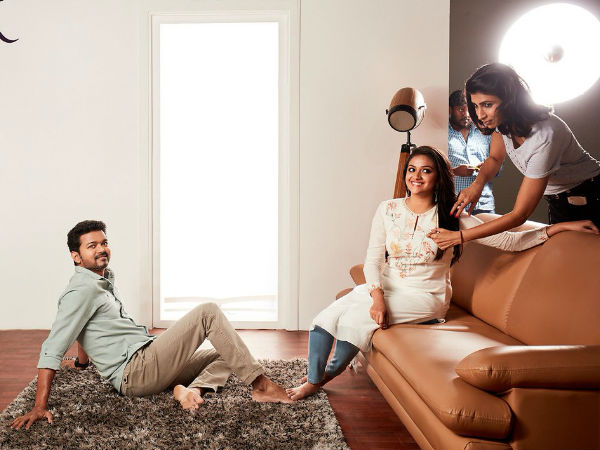 കഴിഞ്ഞ ദിവസം ചിത്രവുമായി ബന്ധപ്പെട്ട് നടത്തിയ ചില ഫോട്ടോഷൂട്ടിന്റെ ചിത്രങ്ങള് പുറത്ത് വന്നിരുന്നു. എന്നാല് ഈ ചിത്രത്തില് വിജയ് ആരാധകര് അത്ര സംതൃപ്തരല്ല എന്നാണ് കേള്ക്കുന്നത്. ഈ ചിത്രത്തില് കീര്ത്തി വിജയ് യോട് ബഹുമാനക്കുറവ് കാണിച്ചു എന്നാണ് ആരാധകര് പറയുന്നത്.