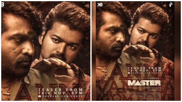 ദളപതിയുടെയും മക്കള് സെല്വന്റെയും പുതിയ കഥാപാത്രങ്ങളെ കാണിച്ചുകൊണ്ടുളള പോസ്റ്ററായിരുന്നു മാസ്റ്ററിന്റെതായി പുറത്തിറങ്ങിയത്. തമിഴ്നാട്ടിലെ തിയ്യേറ്ററുകള് തുറന്നതിനാല് മാസ്റ്ററിന്റെ റിലീസും ഉടനുണ്ടാകുമെന്നാണ് ആരാധകര് പ്രതീക്ഷിക്കുന്നത്. മാളവിക മോഹനന് നായികയാവുന്ന ചിത്രത്തില് അര്ജുന് ദാസ്, ആന്ഡ്രിയ തുടങ്ങിയവരാണ് മറ്റ് പ്രധാന വേഷങ്ങളില് എത്തുന്നത്. അനിരുദ്ധ് രവിചന്ദറാണ് ഇത്തവണ വിജയ് ചിത്രത്തിന് സംഗീതമൊരുക്കിയിരിക്കുന്നത്.