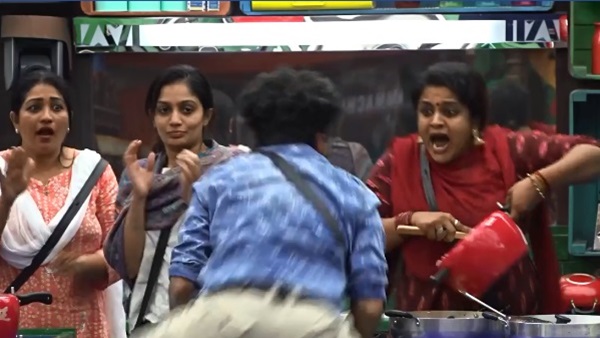 ബിഗ് ബോസില് സംഘര്ഷ ഭരിത മൂഹുര്ത്തങ്ങള്ക്ക് അയവു വരുത്തിയാണ് കുസൃതി തരങ്ങളുമായി ഫുക്രു എത്തുന്നത്. കിച്ചണില് ആര്യയും വീണയും തെസ്നി ഖാനും ഉള്പ്പെടെയുളളവര് നില്ക്കുന്ന സമയത്താണ് ഫുക്രു വരുന്നത്. ഫുക്രുവിന്റെ കുസൃതിയില് വീണ നായരാണ് പെട്ടെന്ന് പേടിച്ചു വിറച്ചുപോവുന്നത്. കിച്ചണില് പാചകം ചെയ്തുകൊണ്ടിരിക്കവേയാണ് വീണയെ ഫുക്രു പേടിപ്പിക്കുന്നത്.