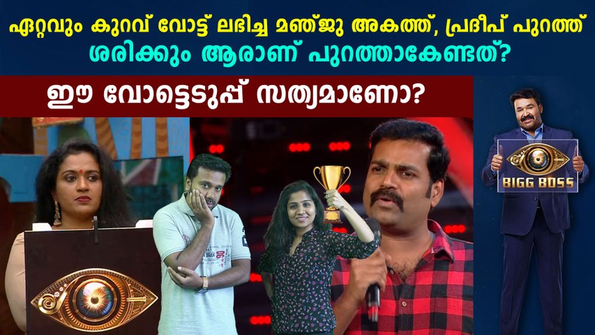 സസ്പെൻസ് നിറഞ്ഞ എലിമിനേഷനായിരുന്നു ഇത്തവണത്തേത്. എലിമിനേഷന്റെ രണ്ടാം ഘട്ടം എന്ന നിലയിൽ മഞ്ജുവും പ്രദീപും യാത്ര പറഞ്ഞ് ബിഗ് ബോസ് ഹൗസിൽ നിന്ന് പുറത്തു പോയിരുന്നു. വീട്ടിൽ നിന്ന് മറ്റൊരു മുറിയിലേയ്ക്കാണ് അംഗങ്ങൾ പോയത്. ഇരുട്ട് നിറഞ്ഞ മുറിയിൽ എത്തിയ ഇവരോട് കണ്ണ് കെട്ടുവാൻ ആവശ്യപ്പെടുകയായിരുന്നു. പിന്നീട് സ്റ്റോർ റൂമിൽ മണി മുഴങ്ങുകയായിരുന്നു. വാതിൽ തുറന്നപ്പോൾ മഞ്ജുവായിരുന്നു അത്. ഈ ആഴ്ച ബിഗ് ബോസ് ഹൗസിൽ നിന്ന് പുറത്ത് പോയത് പ്രദീപായിരുന്നു.