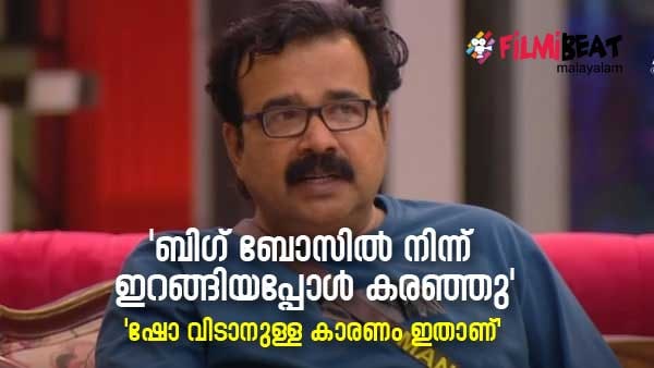 ഏറെ വിഷമത്തോടെയാണ് ക്വിറ്റ് ചെയ്യാമെന്നുള്ള തീരുമാനം എടുത്തതെന്ന് അദ്ദേഹം തുറന്ന് സമ്മതിക്കുന്നുണ്ട്. 'ആരോഗ്യ പ്രശ്നമായത് കൊണ്ട് നമുക്ക് അവിടെ നില്ക്കാന് പറ്റില്ലല്ലോ. ഷോയില് നിന്ന് പുറത്ത് പോകണമെന്ന് പറഞ്ഞപ്പോള് തന്നെ സങ്കടം വന്നു. കാരണം നല്ലൊരു അവസരമാണ് അവിടെ നഷ്ടപ്പെടുന്നത്. കൂടാതെ വിചാരിച്ചത് പോലെ കളിക്കാനും സാധിച്ചില്ല. വികാരത്തിന് പ്രധാന്യം കൊടുക്കുന്നവര്ക്ക് പറ്റിയ ഷോയല്ല' അദ്ദേഹം വ്യക്തമാക്കി.
