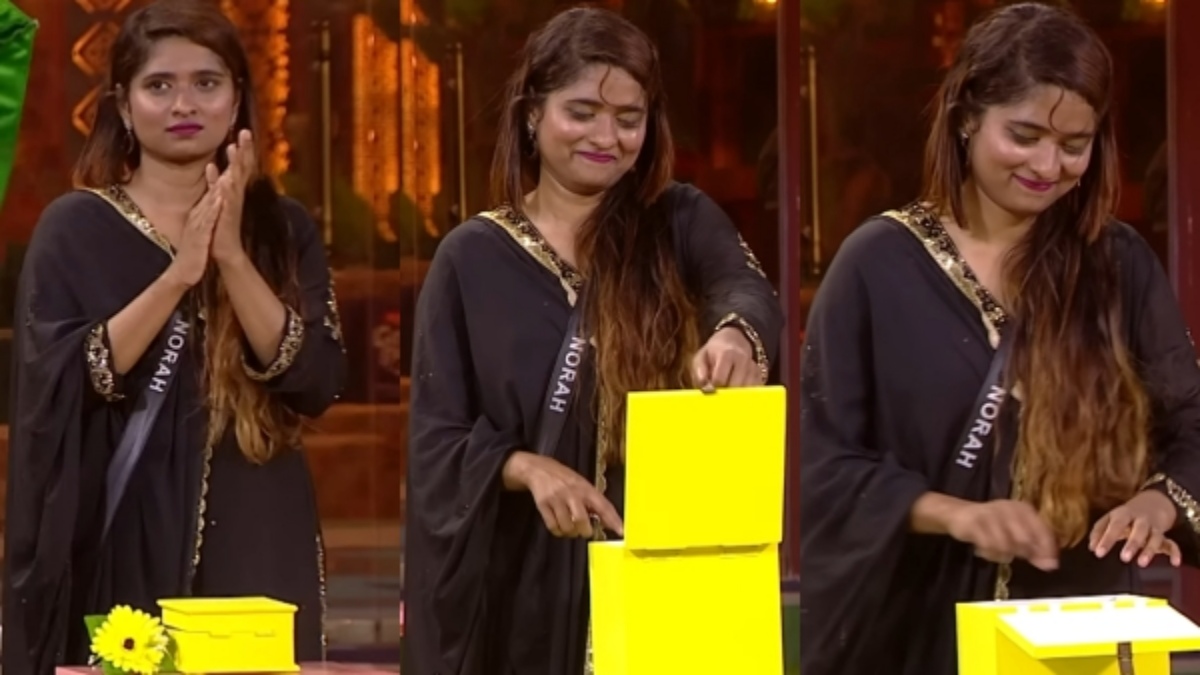 മഞ്ഞ നിറത്തിലുള്ള പൂവും പെട്ടിയുമായിരുന്നു നോറയ്ക്ക് ലഭിച്ചത്. നോറയ്ക്ക് ഏത് നിറത്തിലുള്ള സാഷാണ് ലഭിച്ചതെന്ന് പ്രമോയിൽ കാണിക്കുന്നില്ല. എന്നാൽ നോറയ്ക്ക് ചുവന്ന നിറത്തിലുള്ള സാഷാണ് ലഭിച്ചതെന്നും പക്ഷെ എവിക്ട് ചെയ്യാതെ കുറച്ച് നേരത്തേക്ക് ഹൗസിൽ നിന്നും മാറ്റി നിർത്തിയശേഷം തിരികെ കയറ്റുമെന്നാണ് റിപ്പോർട്ട്.