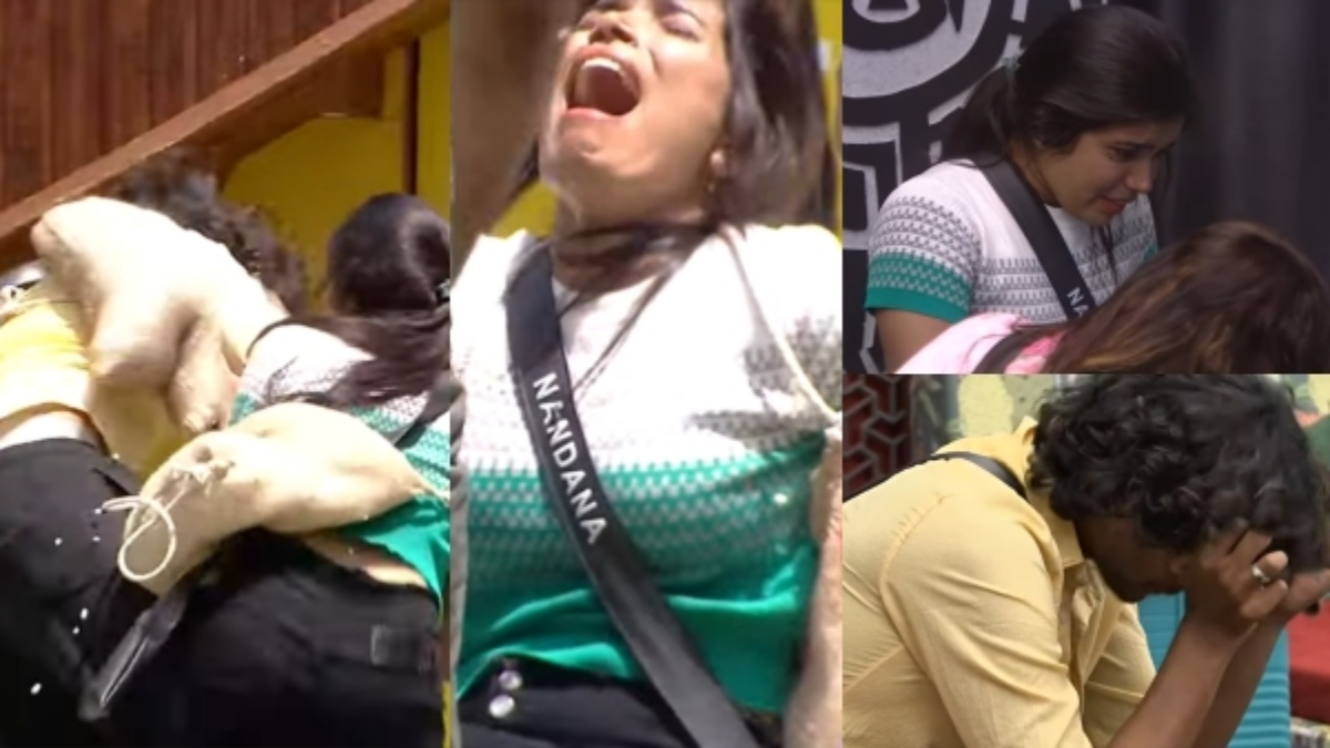 അവസാനം രോഷം വന്ന അർജുൻ നന്ദനയെ വലിച്ച് നിലത്തിച്ചു. പുറം വശം അടിച്ച് നിലത്ത് വീണ നന്ദനയെ ഉടൻ തന്നെ സായ് അടക്കമുള്ള സഹമത്സാർത്ഥികൾ ചേർന്ന് മെഡിക്കൽ റൂമിലാക്കി. ചാക്കിൽ പിടിച്ച് വലിച്ചപ്പോൾ ഡിഫന്റ് ചെയ്തതാണെന്നും എന്താണ് ചെയ്തതെന്ന് ഓർമയില്ലെന്നുമാണ് അർജുൻ സംഭവം വിശദീകരിച്ച് സഹമത്സരാർത്ഥികളോട് പറഞ്ഞത്. മെഡിക്കൽ റൂമിൽ നിന്ന് തിരികെ എത്തിയ നന്ദന ഏറെ നേരം കരഞ്ഞു.