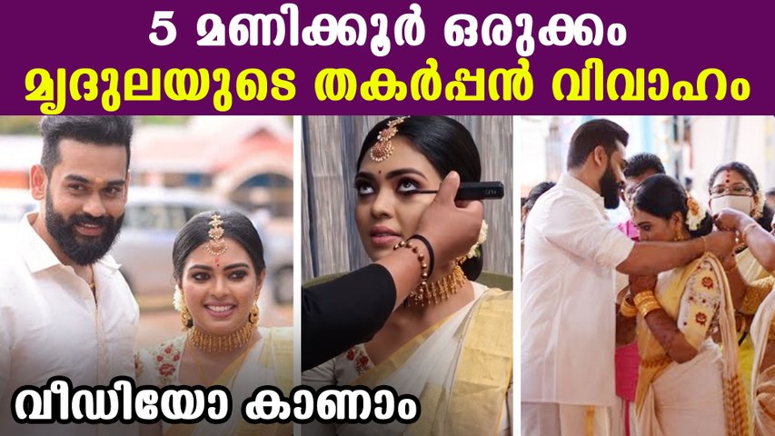 മേക്കപ്പ് ആര്ട്ടിസ്റ്റ് വികാസാണ് നടിയെ ഒരുക്കിയത്. മൃദുലയുടെതായി വികാസ് പങ്കുവെച്ച ഒരു വീഡിയോയും ഏറ്റെടുത്തിരിക്കുകയാണ് ആരാധകര്. ബലരാമപുരത്തെ മംഗല്യ കസവ് ടീം തയ്യാറാക്കിയ ഗോള്ഡ് കസവ് പട്ടുസാരിയാണ് മൃദുല വിവാഹത്തിന് ഉടുത്തത്. വിവാഹ വീഡിയോ വൈറലാവുമ്പോള് മൃദുലയുടെ സാരിയും ശ്രദ്ധേയമാവുകയാണ്.