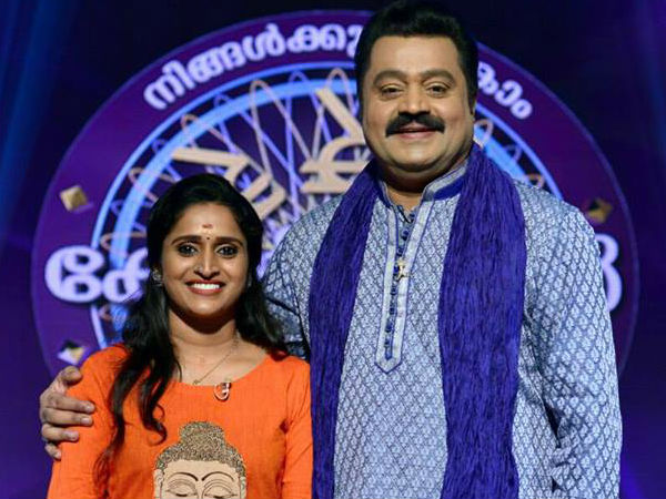 നിങ്ങള്ക്കുമാകാം കോടീശ്വരന് എന്ന പരിപാടിയില് പങ്കെടുക്കാന് വന്നപ്പോഴാണ് സുരഭി സുരേഷ് ഗോപിയെ അനുകരിച്ചത്. ഒരേ സമയം സുരേഷ് ഗോപിയെയും പാത്തുവിനെയും സുരഭി സ്ക്രീനിലെത്തിച്ചു. നേരത്തെ ഒരു പൊതു ചടങ്ങിലും സുരഭി സുരേഷ് ഗോപിയെ അനുകരിച്ച് കൈയ്യടി നേടിയിരുന്നു.
