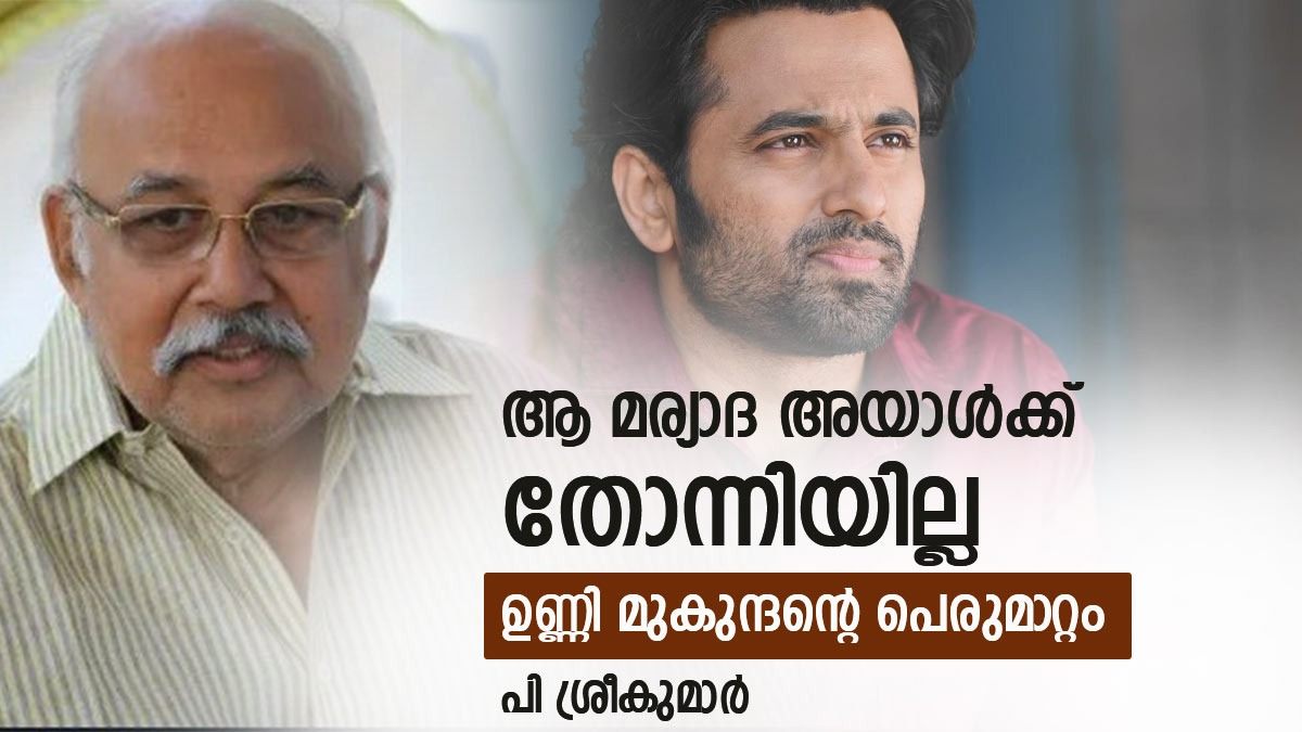 എനിക്കതിൽ ദുഖമില്ല. അയാളോട് ഒരു വിരോധവുമില്ല. പക്ഷെ അങ്ങനെയൊന്നും ആകരുത്. അതാണ് ഇന്നത്തെ തലമുറയിൽ കാണുന്ന പ്രശ്നം. പണ്ടൊക്കെ സീനിയേർസിനോട് ബഹുമാനം ഉണ്ടായിരുന്നെന്നും പി ശ്രീകുമാർ പറഞ്ഞു. നേരത്തെ നടൻ മമ്മൂട്ടിയെയും പി ശ്രീകുമാർ വിമർശിച്ചിരുന്നു. പൊതുവെ തനിക്ക് നേരെ വരുന്ന വിമർശനങ്ങളോട് ഉണ്ണി മുകുന്ദൻ പ്രതികരിക്കാറില്ല. ഉണ്ണി മുകുന്ദൻ മർദ്ദിച്ചെന്ന് ആരോപിച്ച് മാനേജർ വിപിൻ കുമാർ പരാതി നൽകിയത് കഴിഞ്ഞ വർഷം വലിയ വാർത്തയായിരുന്നു. ടൊവിനോ തോമസ് നായകനായ പുതിയ ചിത്രം നരിവേട്ടയെ പ്രശംസിച്ച് പോസ്റ്റിട്ടതാണ് ഉണ്ണി മുകുന്ദനെ പ്രകോപിപ്പിച്ചതെന്ന് പരാതിക്കാരൻ പറയുന്നു. എന്നാൽ ആരോപണം ഉണ്ണി മുകുന്ദൻ നിഷേധിച്ചു.